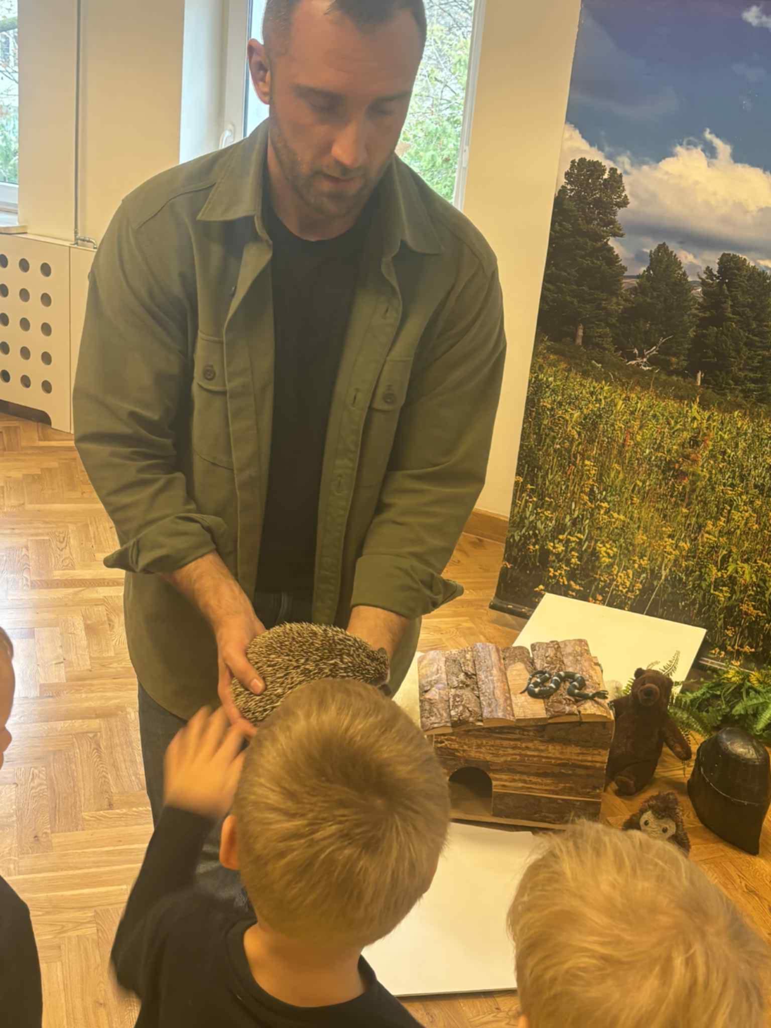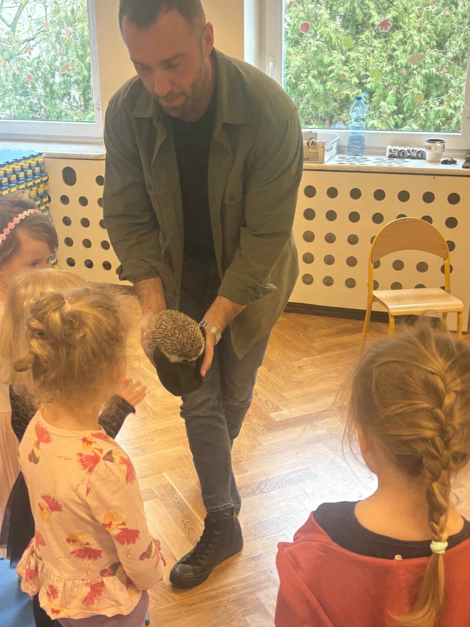 Podczas spotkania dzieci dowiedziały się wielu ciekawostek o życiu jeży – takich, których nie znajdzie się w żadnej książce! Okazało się, że choć jeże mają kolce, to wcale nie muszą być kłujące, o czym przedszkolaki przekonały się, delikatnie głaszcząc naszego gościa.