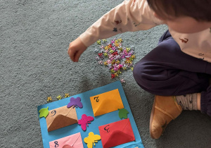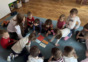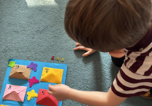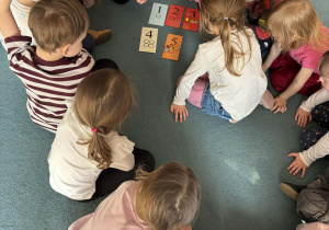 Podczas zajęć z języka angielskiego z okazji Dnia Matematyki dzieci utrwalały liczenie, kolory oraz kształty.