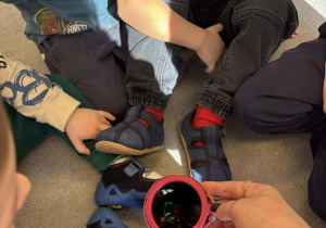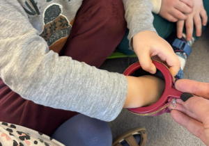 W trakcie zajęć szukały także różnych kształtów w sali, nazywając je w języku angielskim.
