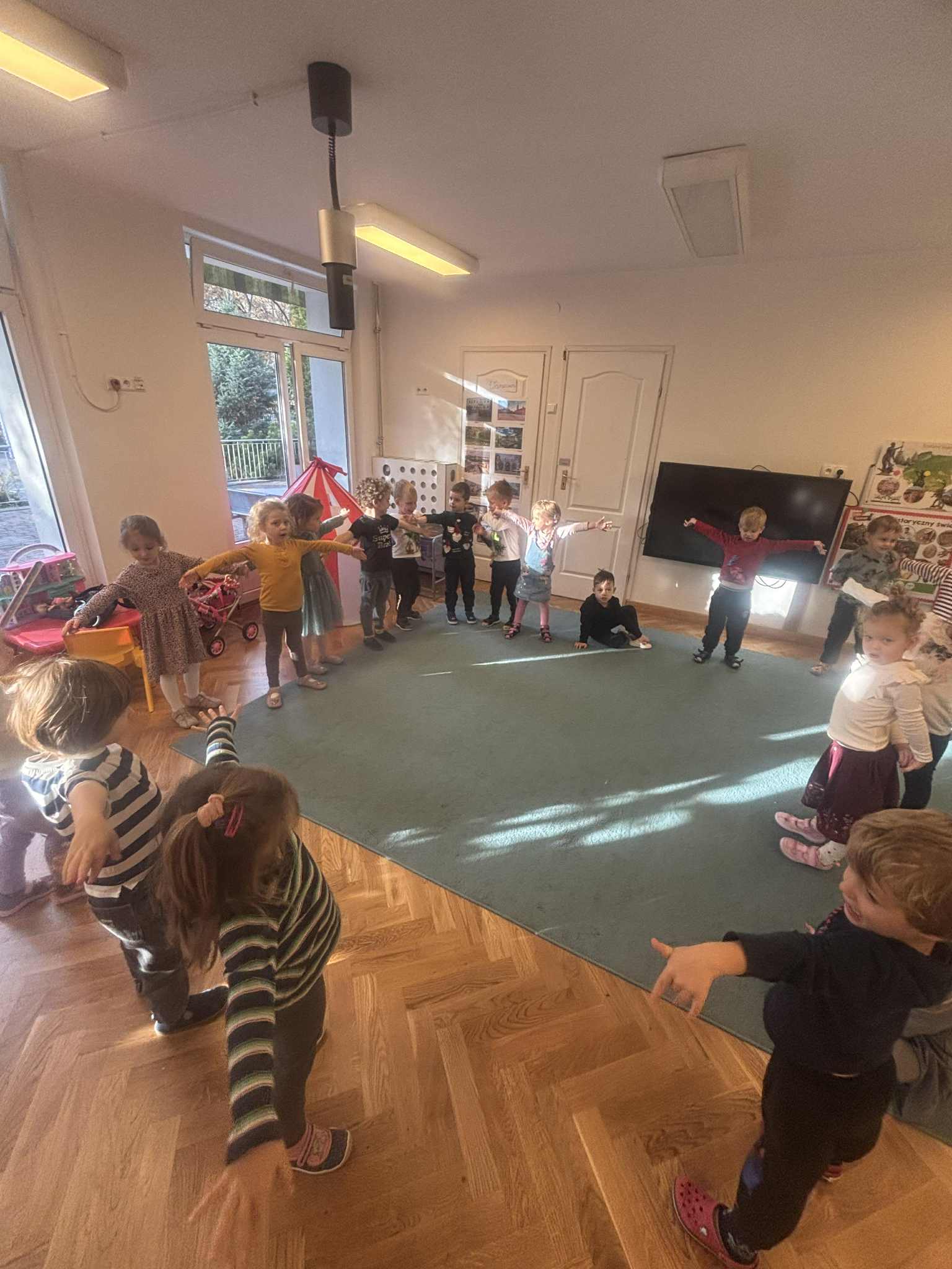 Dzieci poradziły sobie doskonale — z ogromnym zaangażowaniem uczestniczyły w zabawach językowych, chętnie zgłaszały się do zadań i z radością prezentowały swoje umiejętnośc.