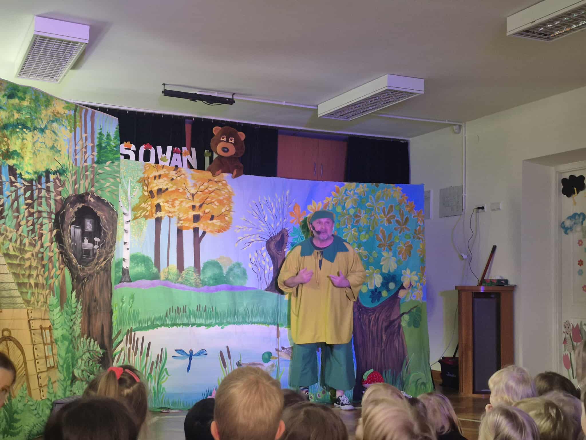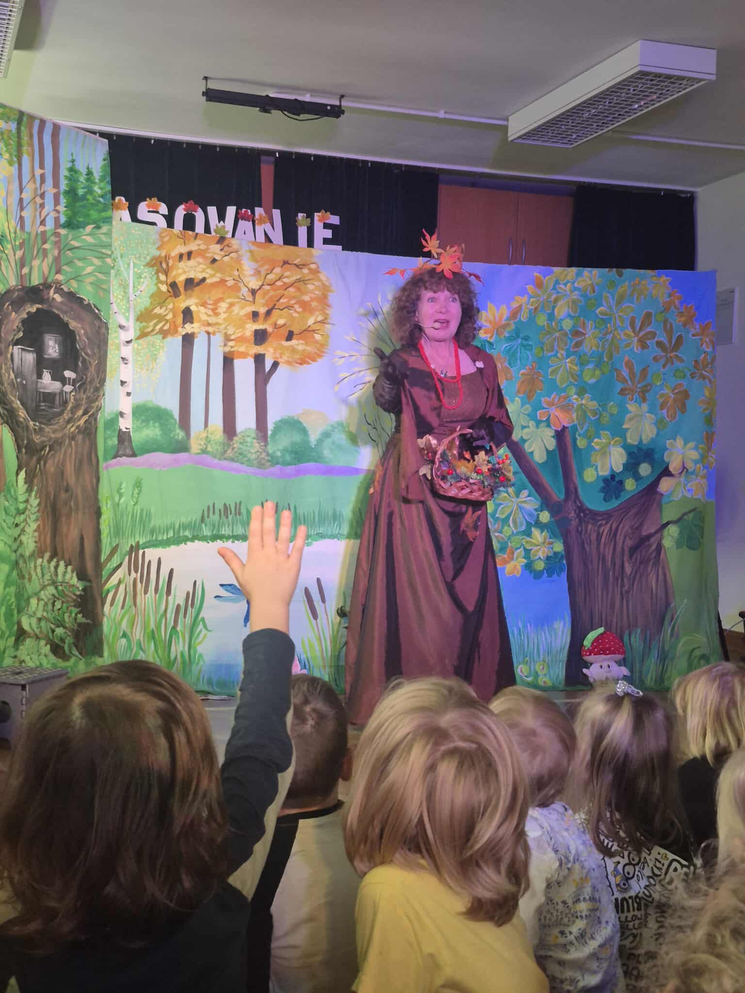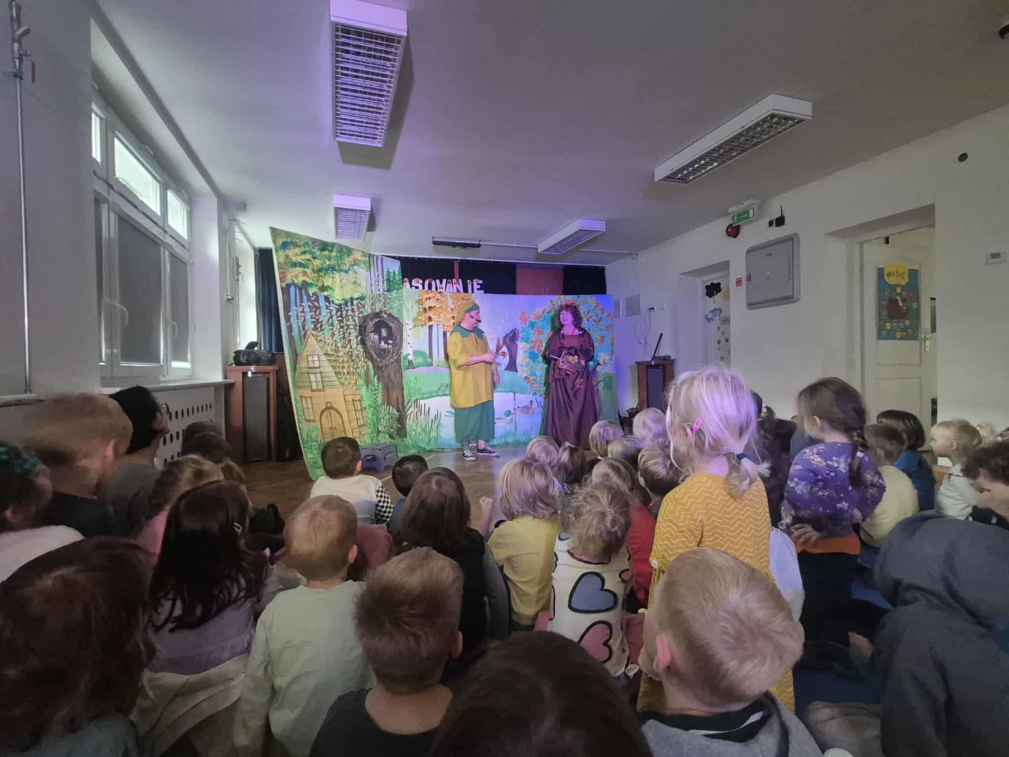 Dzieci z ogromnym zainteresowaniem śledziły losy bohaterów, a kolorowa scenografia i muzyka wprowadziły wszystkich w prawdziwie jesienny nastrój.