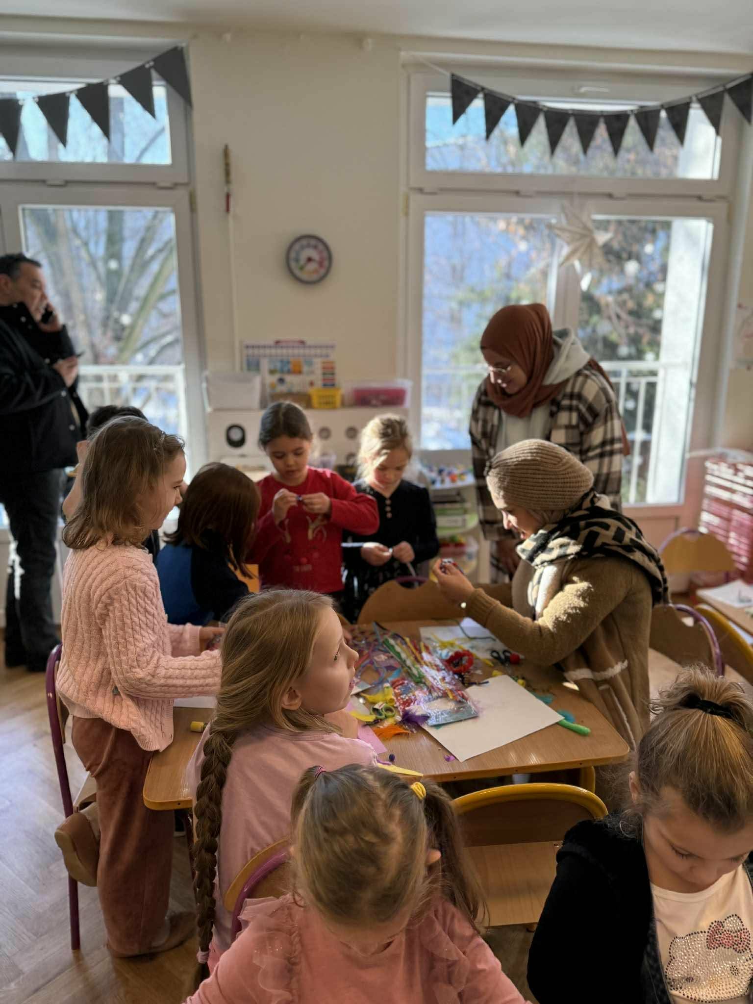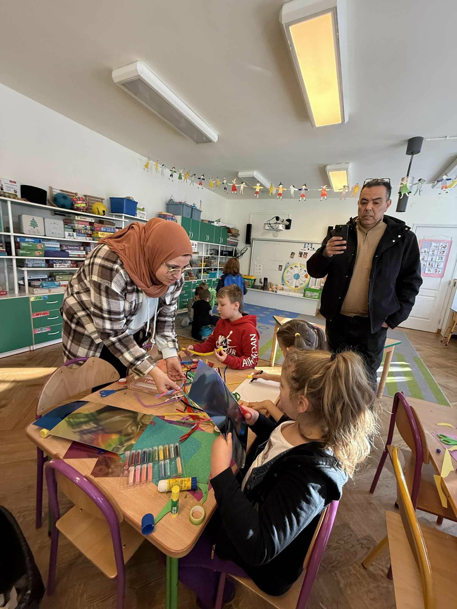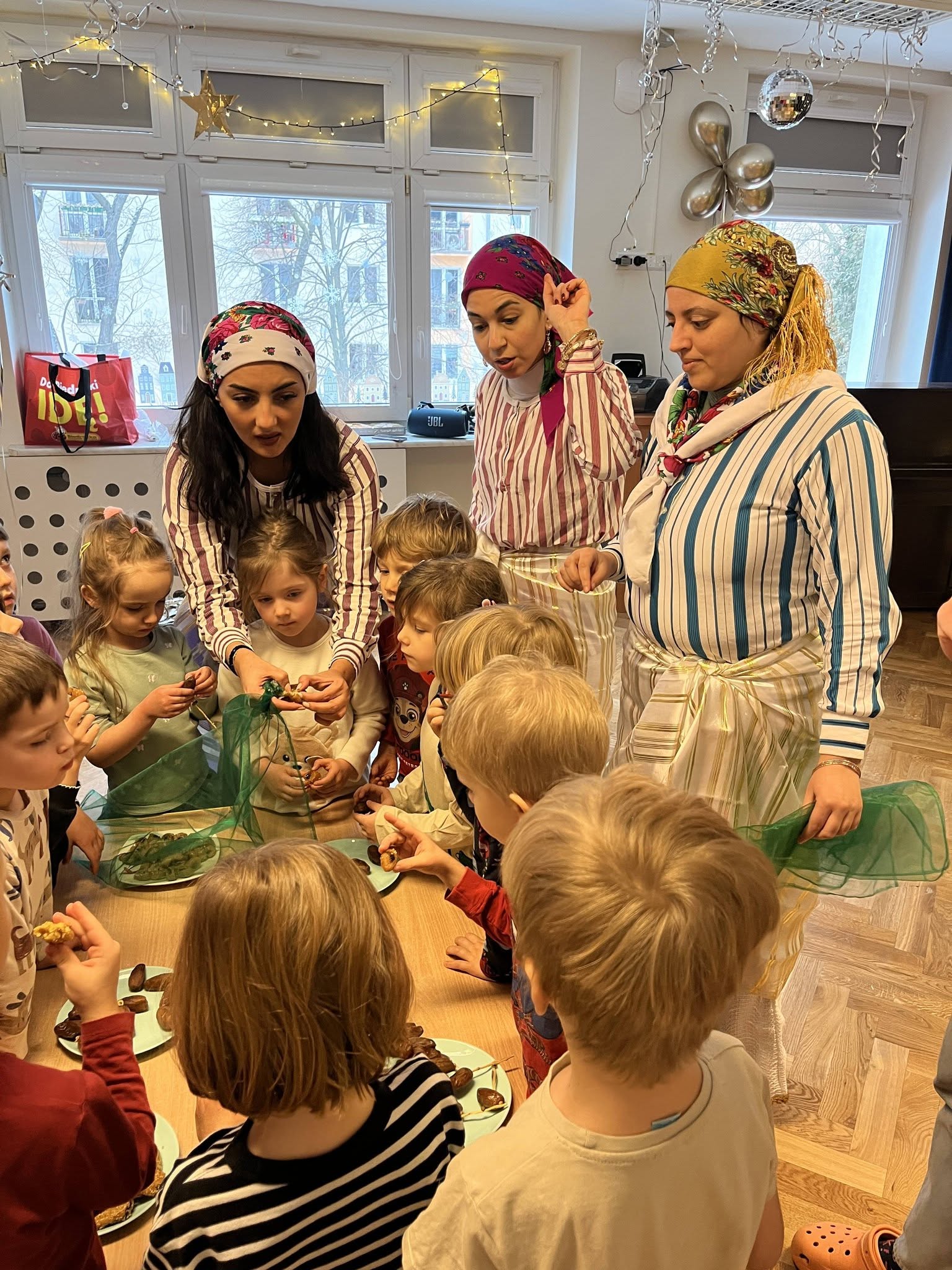 Nasi goście poprowadzili również niezwykle ciekawe zajęcia dotyczące tradycji i kultury Tunezji. Dzieci miały okazję poznać tradycyjne tunezyjskie stroje i tańce, spróbować specjałów kuchni Tunezji - m.in. pysznych daktyli- a także dowiedzieć się, jak wygląda proces wyrabiania oliwy z oliwek. Goście przywieźli ze sobą gałązki oliwne, oliwki, oliwę oraz smakołyki ze swojego kraju.