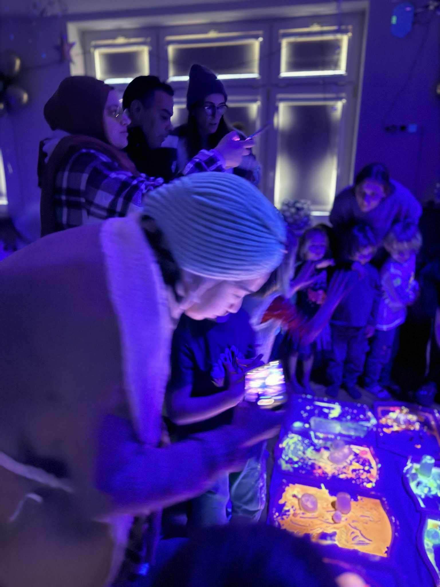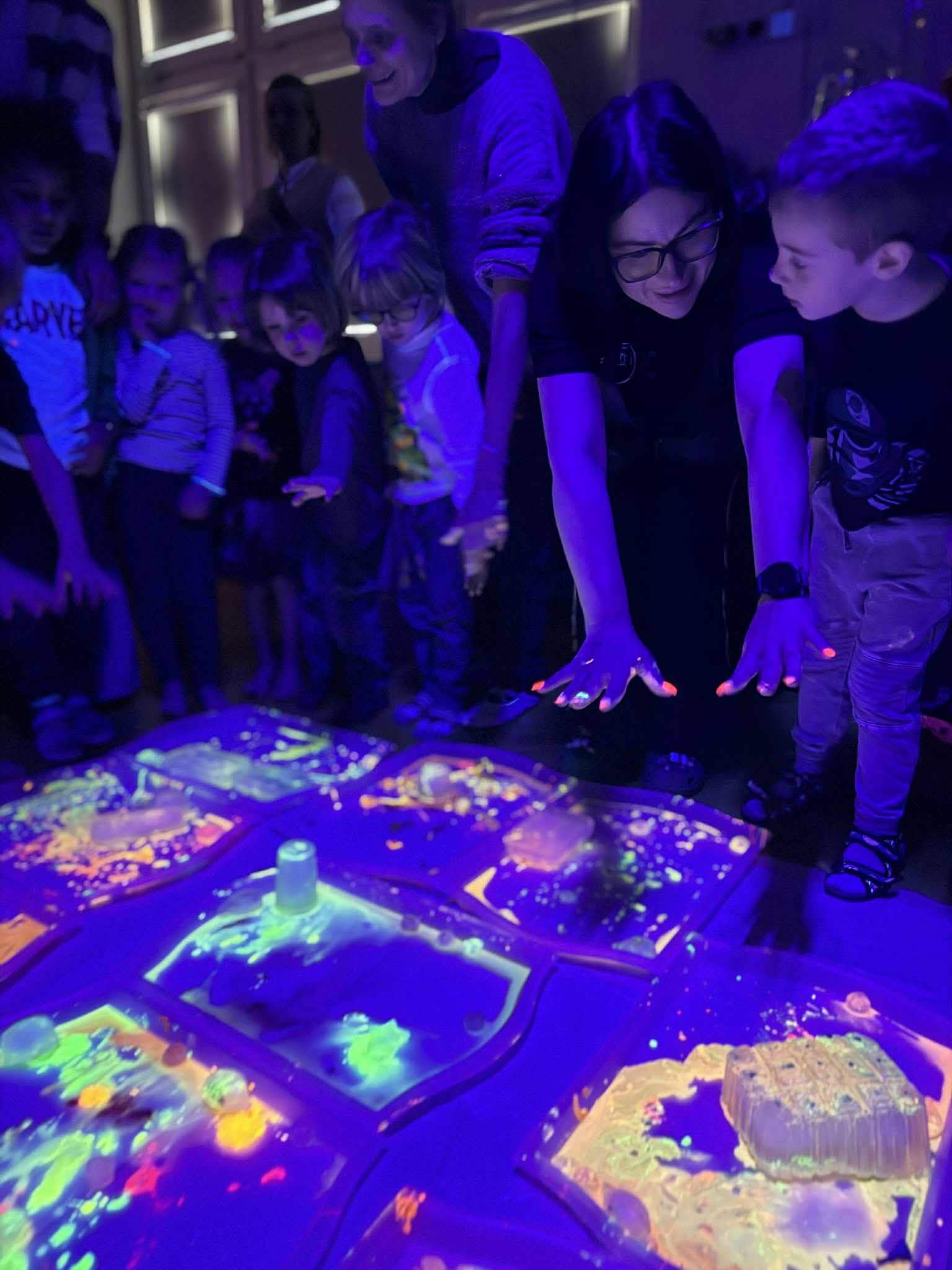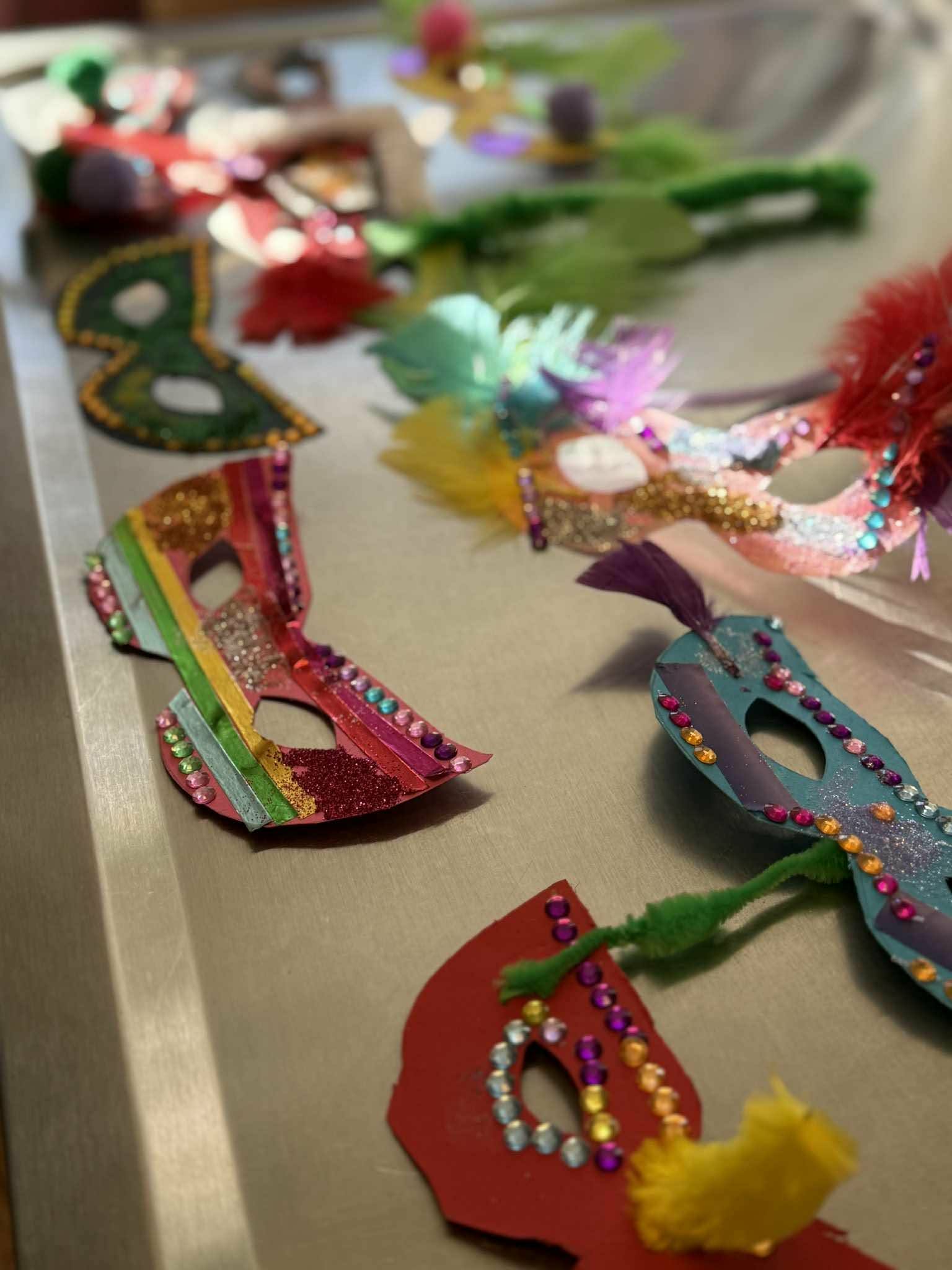 Wspólnie wzięliśmy udział w eksperymentach z lodem i fluorescencyjnymi farbami, robiliśmy karnawałowe maski, bawiliśmy się w zabawy muzyczne, gimnastyczne i językowe.