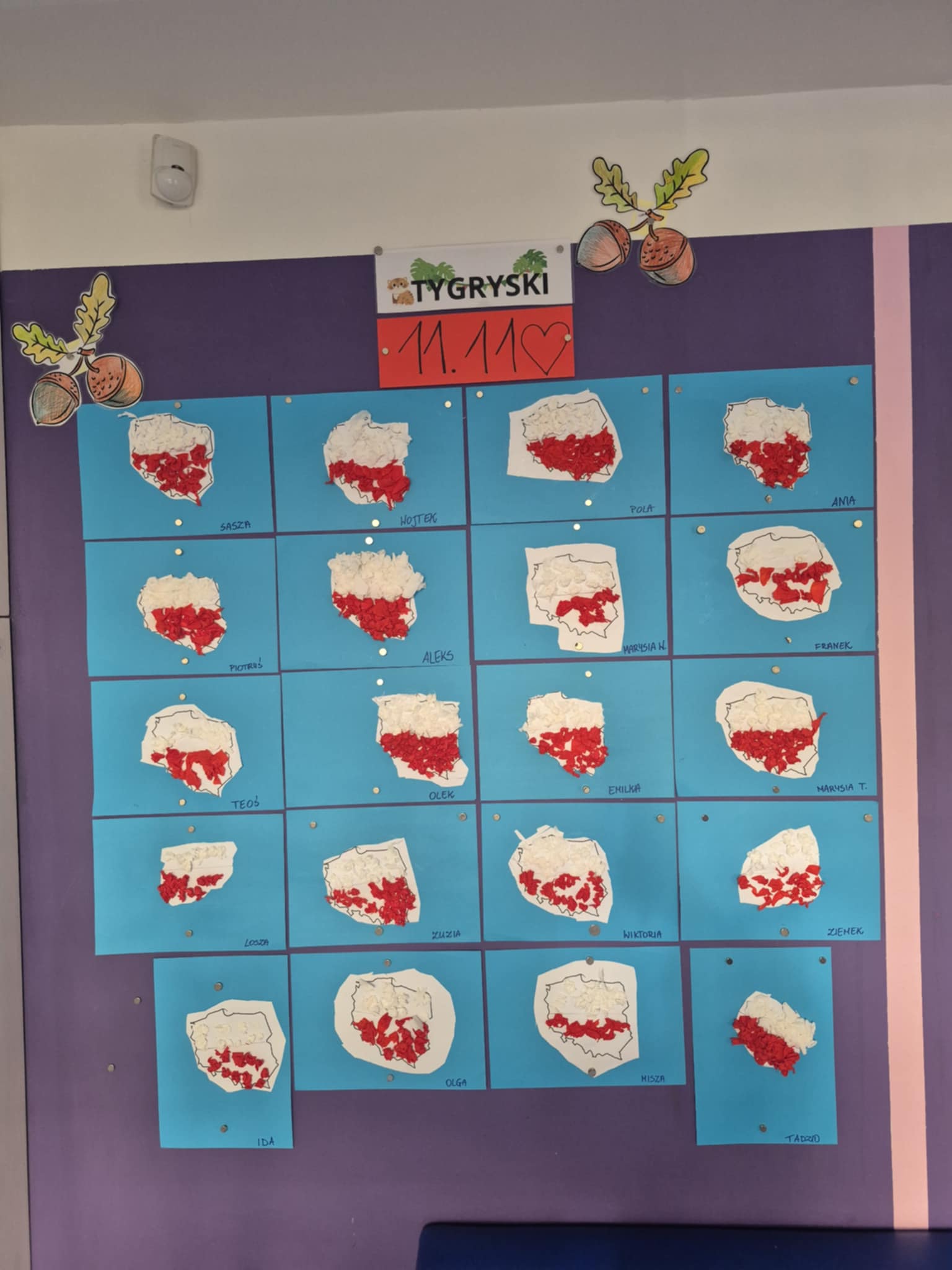 Dzieci z grupy Tygryski z dużym zaangażowaniem przygotowywały się do obchodów 11 listopada.