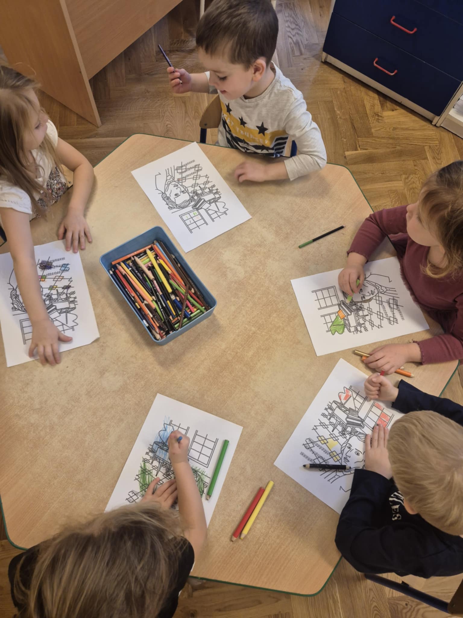 Dzieci dowiedziały się, skąd Chopin czerpał natchnienie, w jakich utworach możemy usłyszeć odgłosy natury, rytm poloneza czy melancholię tęsknoty za ojczyzną. Słuchaliśmy jego muzyki, improwizowaliśmy ruchem i dźwiękiem, a także już na zajęciach w grupach - tworzyliśmy własne, inspirowane nią prace plastyczne.