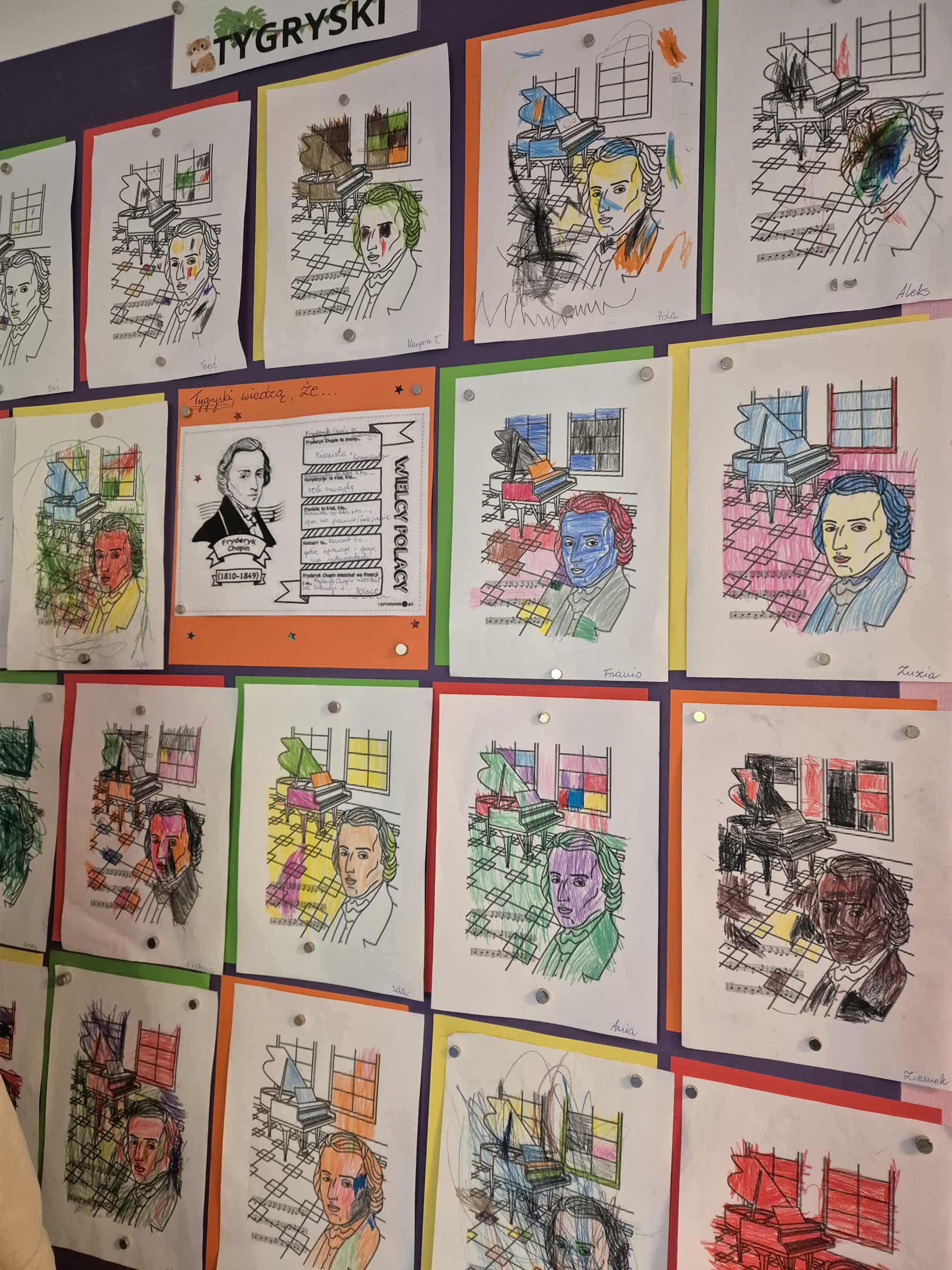 Podczas zajęć plastycznych, muzycznych i tematycznych poznawaliśmy świat dźwięków, emocji i barw, które inspirowały Chopina. Podczas koncertu "Belli" wyruszyliśmy w muzyczną podróż przez jego życie — od rodzinnej Żelazowej Woli, przez spacery po warszawskich Łazienkach, aż po artystyczny Paryż.